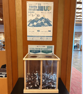 さらに、回収ボックスは投票形式とし、「旅館の客室に使い捨て歯ブラシは必要?」という問いに対し、「ゴミを減らすために自分で持ってくる!」「あった方がいい!」どちらかに投票してもらう形を取りました。